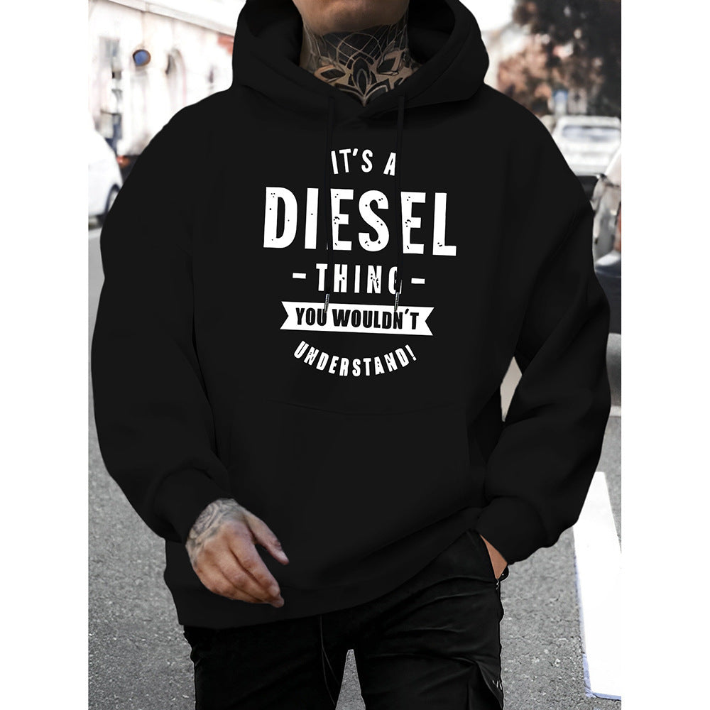 • Design Elements: Large front pocket, graphic text print on the chest, hood with drawstrings