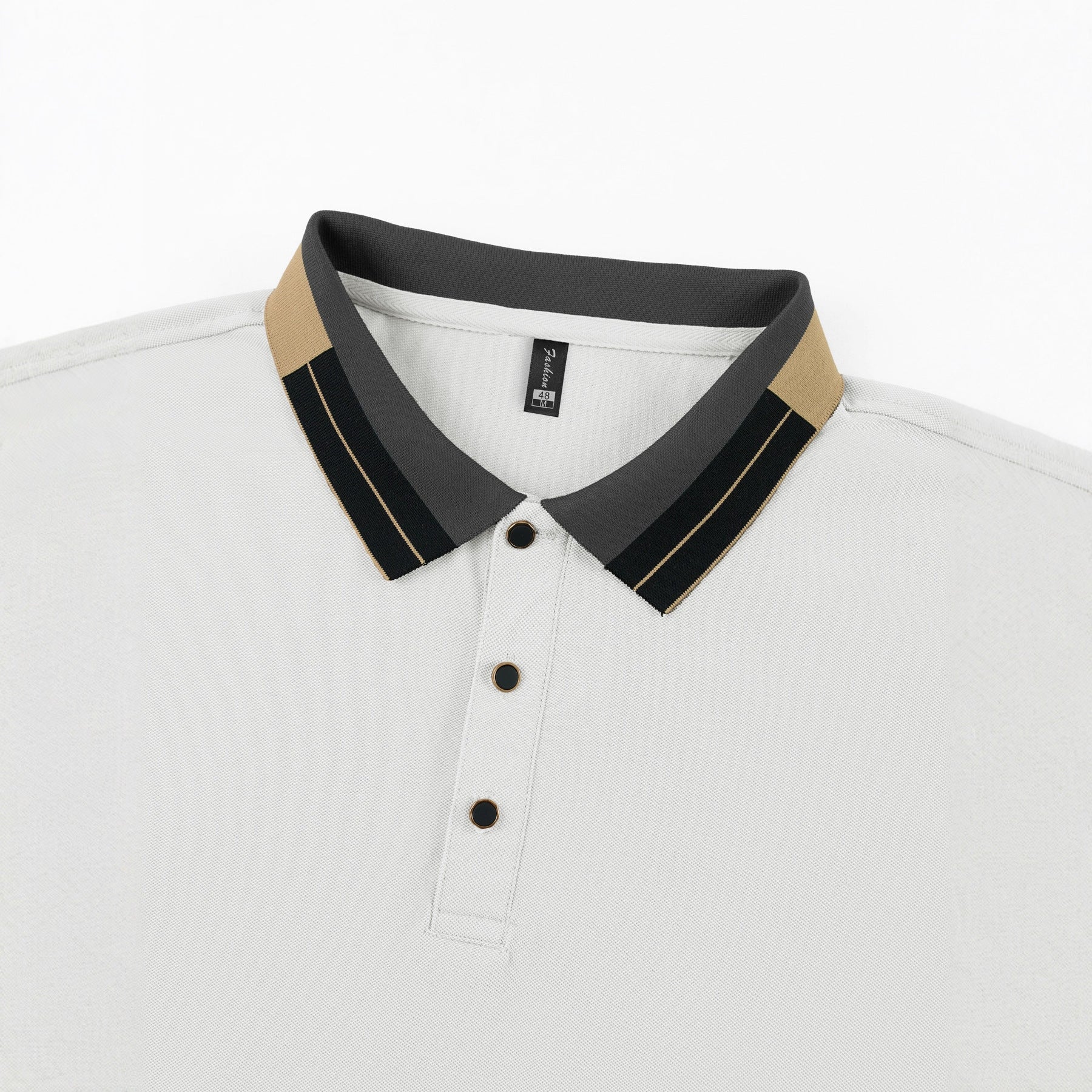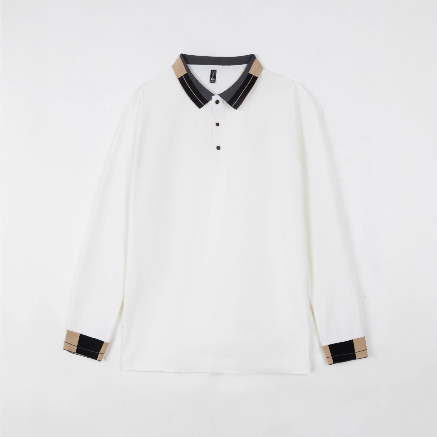 • Design Elements: Contrast collar and cuffs, button-down front closure