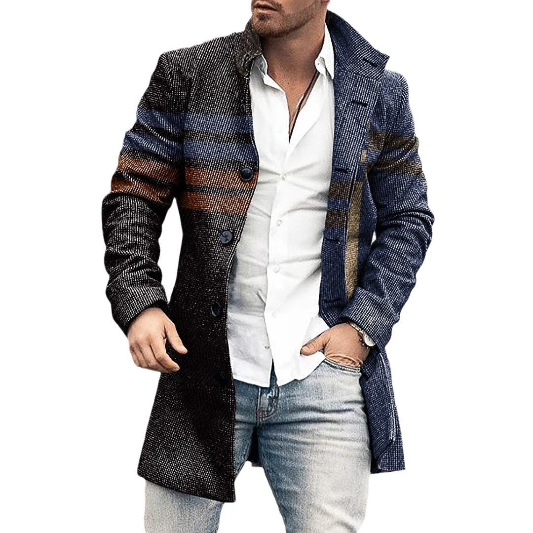 • Design Elements: Patchwork pattern, double-breasted design, contrast sleeve details