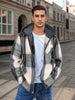 • Design Elements: Plaid pattern with a hood, front zipper closure, chest pocket