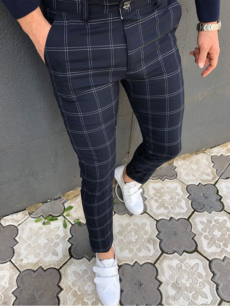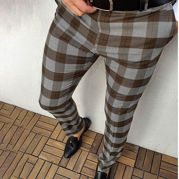• Design Elements: Classic plaid pattern, sleek straight-leg cut, modern tassel loafers pairing