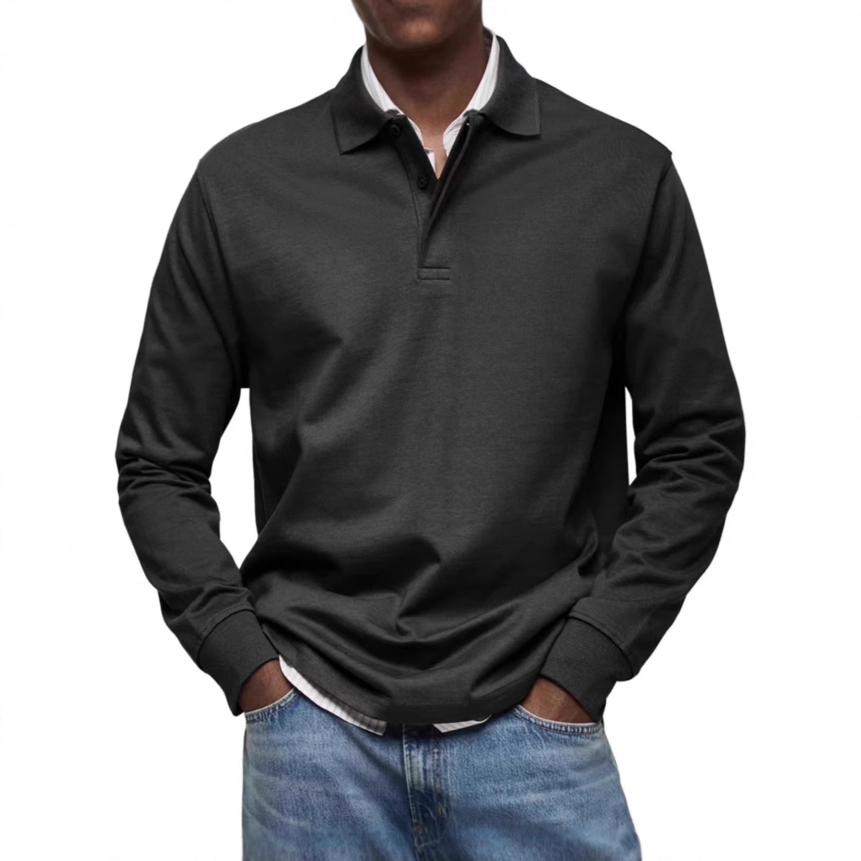 • Design Elements: Classic polo collar, buttoned placket, and a sleek fit