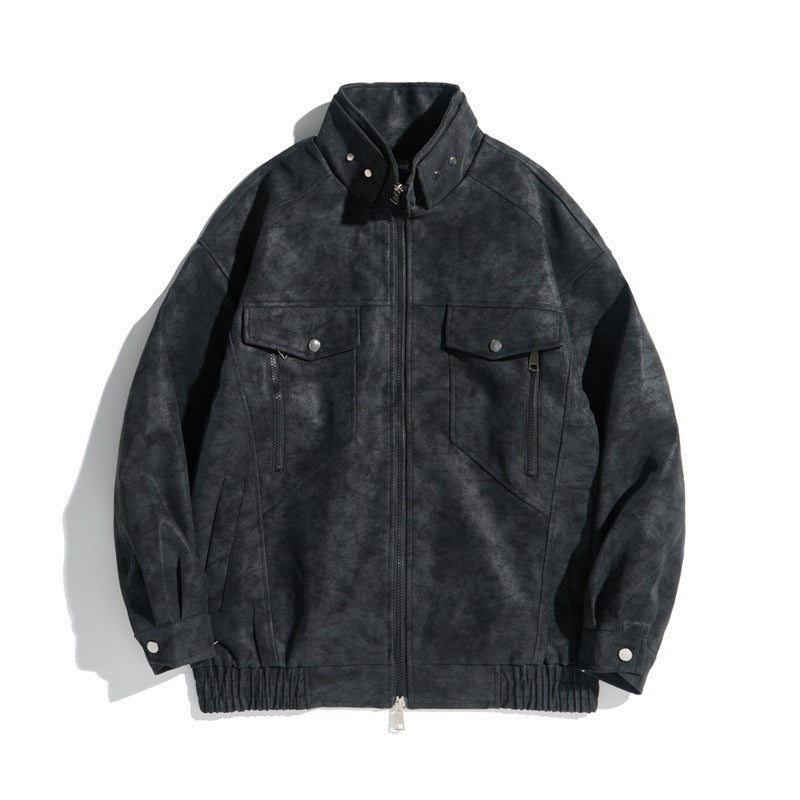 • Design Elements: Two front chest pockets with zippers, stand collar design, ribbed cuffs and hem