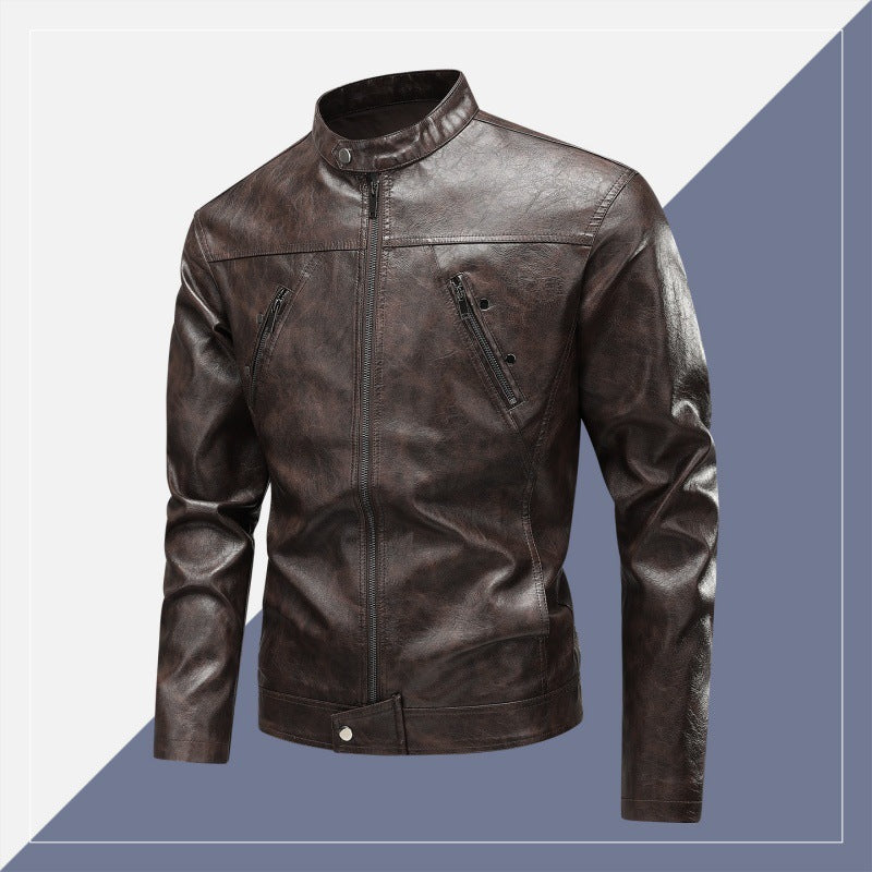 • Design Elements: Zippered pockets, sleek silhouette, stand collar design
