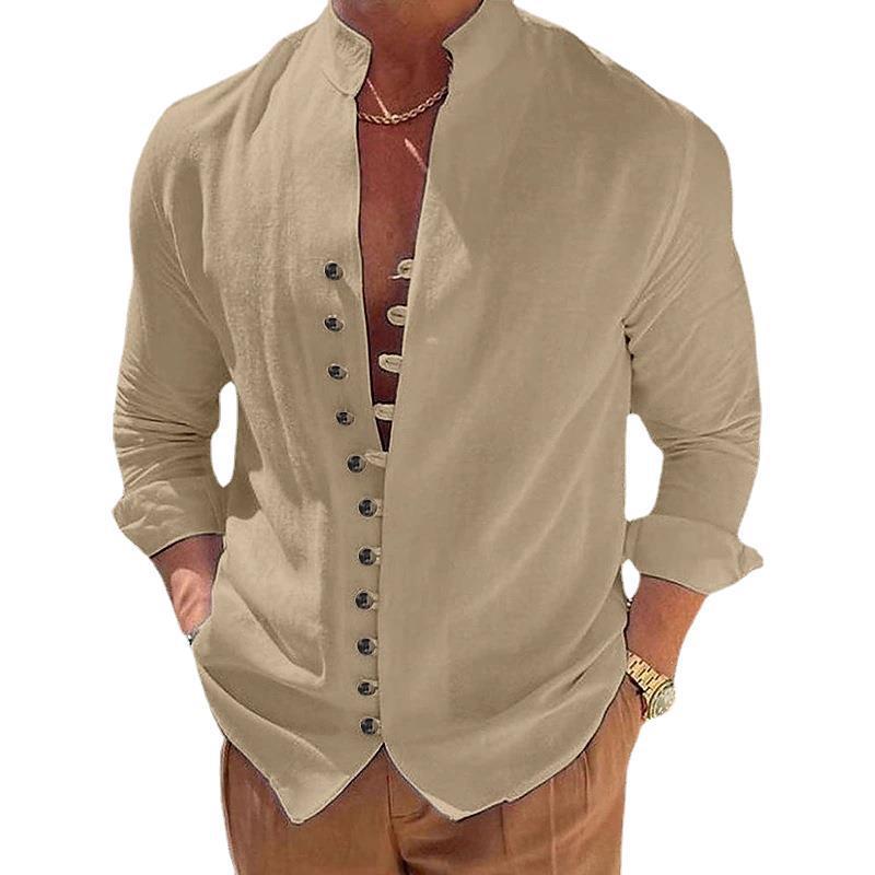 • Design Elements: Single-breasted button closure, open collar design, rolled-up sleeves