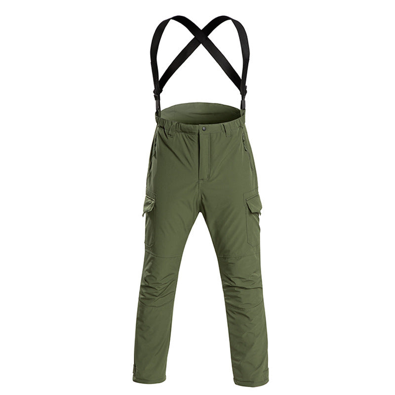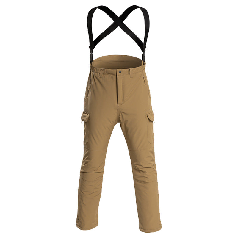 • Design Elements: Includes a hooded jacket with a zipper closure and cargo pants with suspenders for added functionality