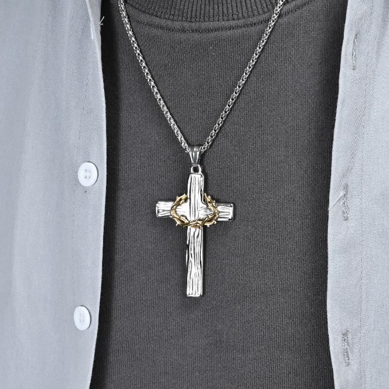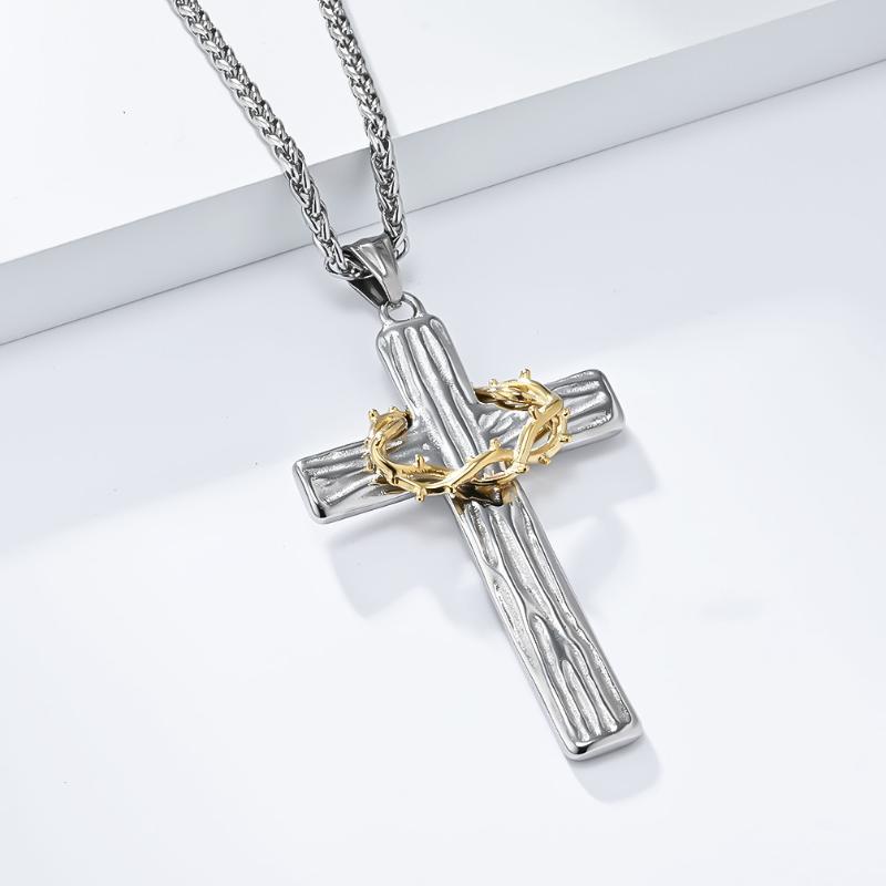 Vintage Casual Thorn Wreath Cross Necklace 26077700TO
