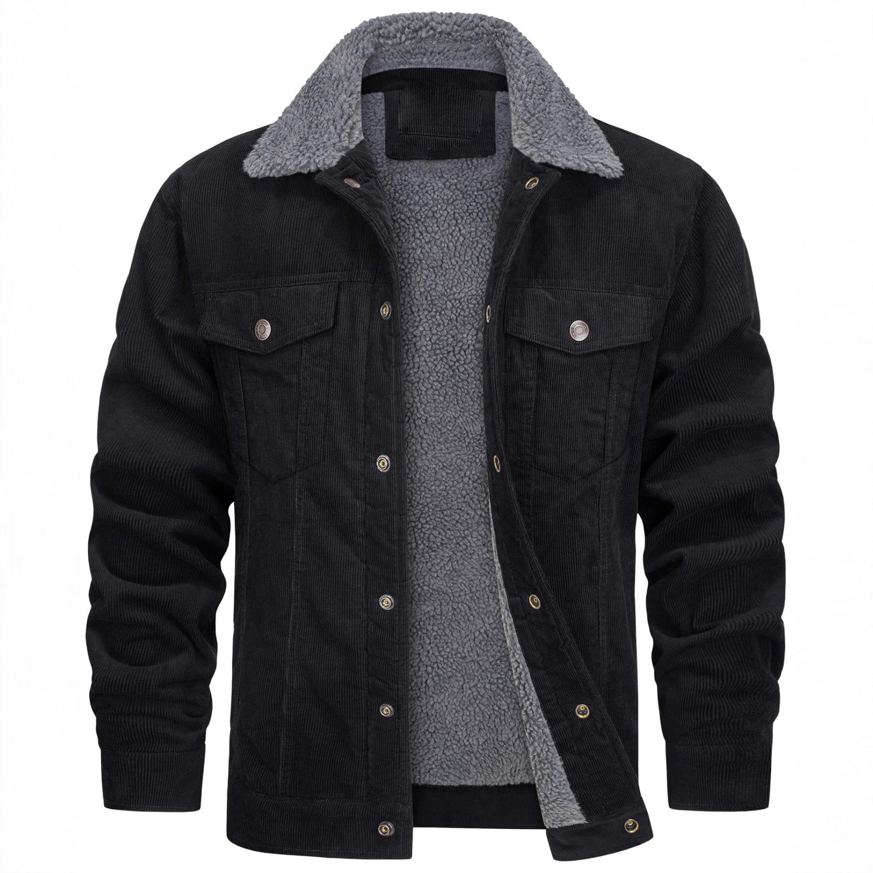 • Design Elements: Two front chest pockets, button closures, fleece-lined interior