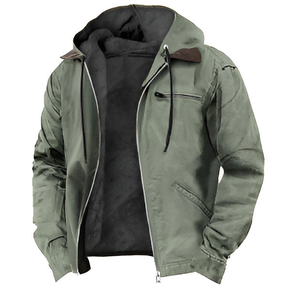 • Design Elements: Detachable hood, adjustable drawstrings, front zipper closure
